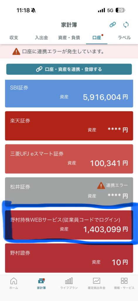 - 野村証券:0円(評価損益0円)→0円(評価損益0円)